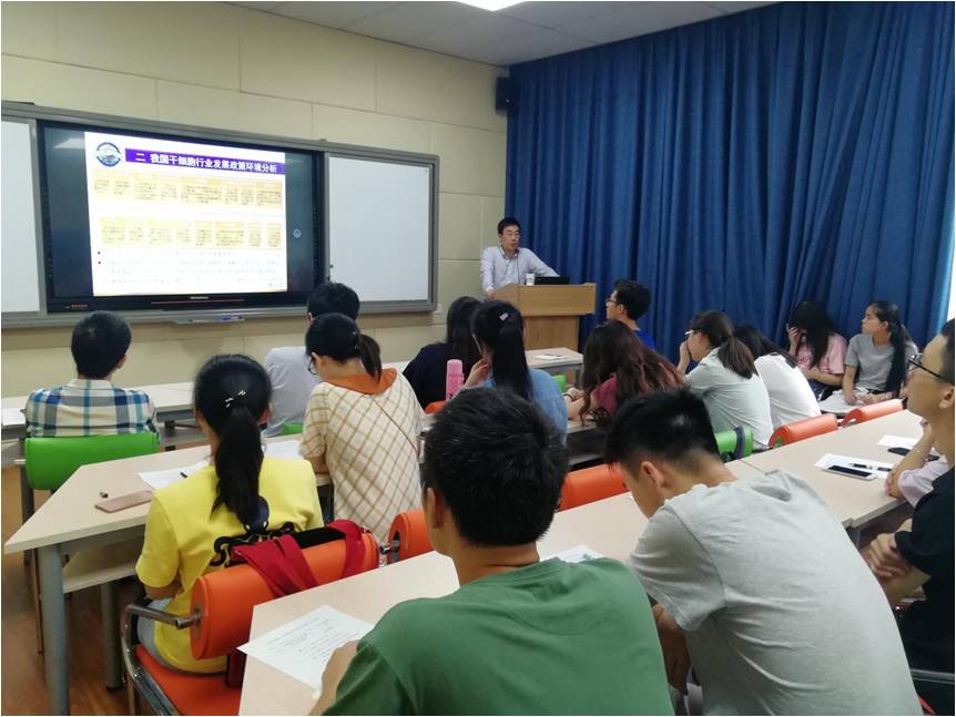 7月4日下午,我院邀请南京大学医学院附属鼓楼医院临床干细胞实验室主任、东南大学兼职教授王斌来校开展了主题为《干细胞技术的发展与应用——南京鼓医模式》的学术讲座,我院院长肖国生、教师戚文华、杜慧慧、江林娟,以及生工院40多名学生积极参加了此次讲座。