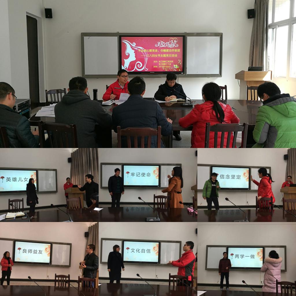 今年是“三·八”国际妇女节108周年,是全面贯彻落实党的十九大精神的开局之年,是改革开放40周年,是决胜全面建成小康社会、实施“十三五”规划承上启下的关键一年,为了充分肯定广大女教职工对社会主义强国建设的贡献,提高全员教职工对女同志的关注和认可,促进女教职工乃至全员教工的社会主义建设服务能力,提高协调合作能力、团队意识,2138cc太阳集团教工党支部特组织“不忘初心跟党走、巾帼建功齐前进”室内拓展活动。