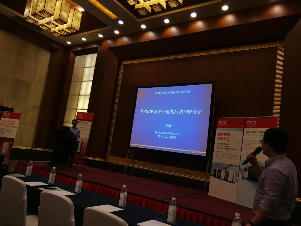2018年4月26日,我院教师王兆丹,石汝杰,唐华丽,曲留柱受邀参加成都赛默飞高校科研全国巡演交流会,主要学习交流新型设备在科研中的应用、检测分析方面新的检测方法以及设备改造应用等。会后,我院四位教师参观考察了四川省分析检测服务中心的实验室,主要为了学习该中心实验室建设布局、设备使用管理等方面的经验,为我院新实验室的建设提供参考。