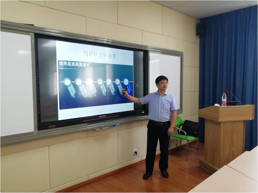 7月12日下午,胡爱军教授主要围绕工程教育认证概况、认证的核心理念、认证机构及程序、现场考察、各类人员职责五个方面介绍了工程教育认证的相关内容。7月13日上午,胡教授主要讲解了认证申请书、自评报告书的撰写方法和注意事项,并就认证过程中的主要环节和可能会遇到的问题进行了深入剖析。同时,胡教授指出工程教育认证工作需要全员参与才能更好的完成,在我院认证工作过程中,胡教授也将继续对我院进行指导。
