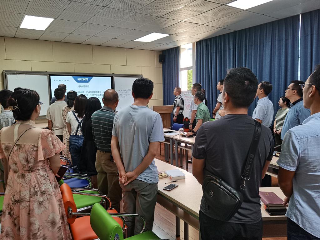 会上,肖国生院长带领全体教师重温《人民教师誓词》。
