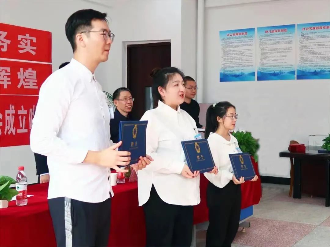 最后,研究生会主席张琪代表研究生会全体成员作表态发言。学院领导为大家颁发了聘书,并合影留念。