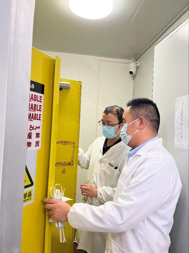 检查人员重点对全院实验室危险化学品管理、仪器设备使用、消防和水电安全等情况进行了全面细致的检查。汪开拓副院长就实验室试剂库房的安全问题做重点强调,实验管理人员要严格门禁制度、要确保监控设备正常运行,药品进出库要登记详实,易制毒易制爆等化学药品要明确使用人、流向、使用和回收量,试剂要分类摆放整齐有序,要定期开展安全隐患排查工作。