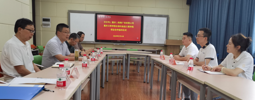 7月10日下午,我院与沃尔玛(重庆)购物广场有限公司举行校企合作签约仪式。沃尔玛重庆公司人力资源经理杨锐一行3人,我院班子成员,学工办和教学示范中心负责人参会。党总支书记骆孟鑫主持会议。
