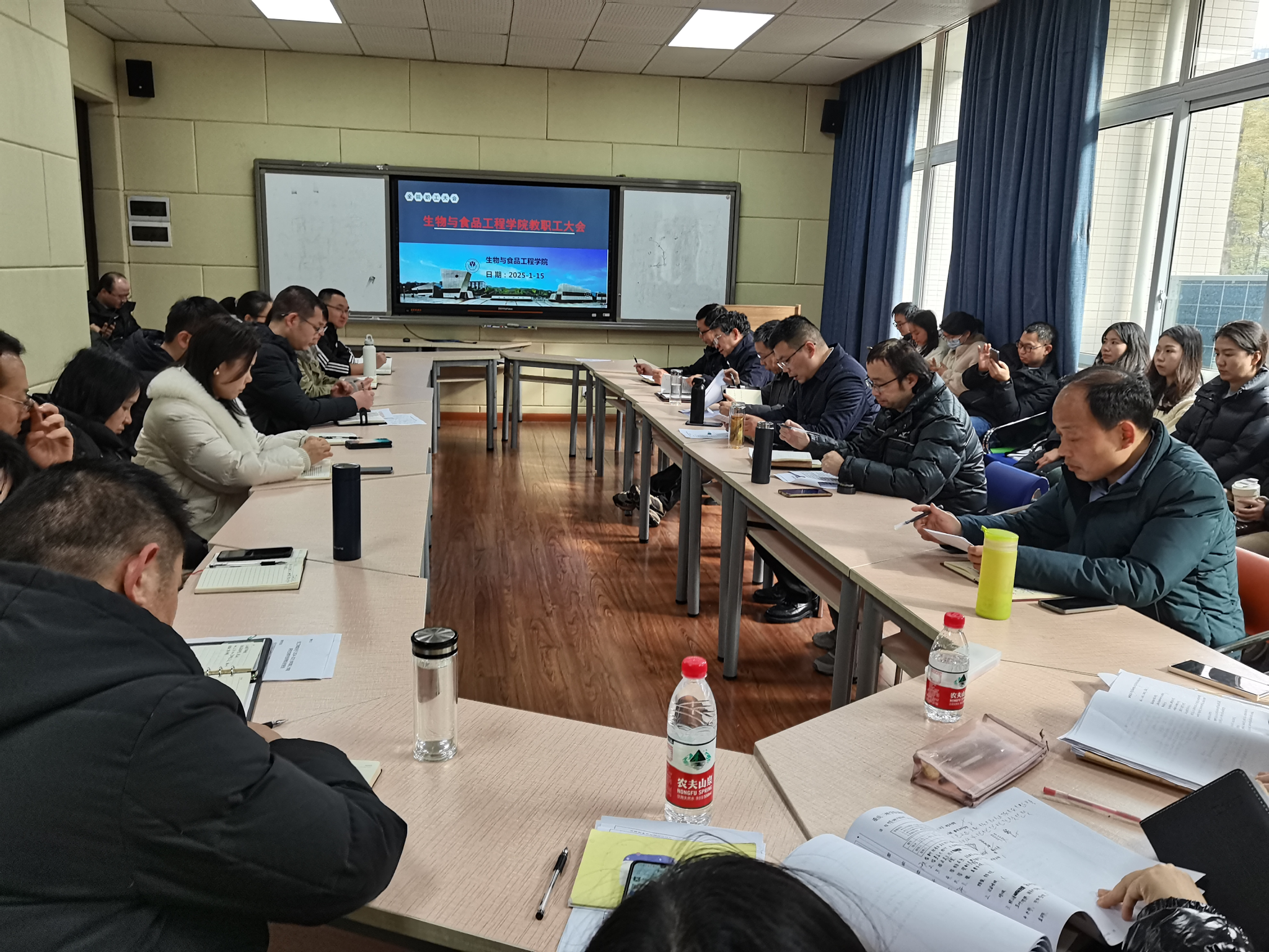 1月15日下午,我院在慎思楼2栋216召开秋季学期工作总结会,党总支书记骆孟鑫主持会议,全体教职工参会。