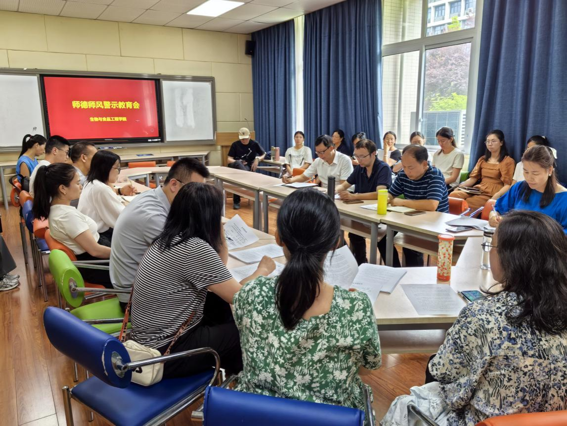 6月19日,我院在慎思楼2栋216室召开师德师风警示教育会。党总支副书记陈文剑主持会议,全院教职工参会。