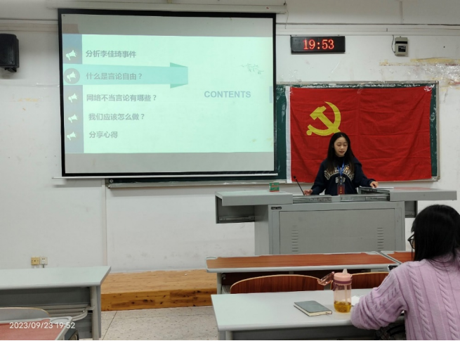 本次学习由丁慧琳领学《网络文明-网络发言要自由,更要谨慎》,活动伊始,丁慧琳通过视频分享“79元眉笔哪里贵了”的故事,详细阐释了故事中所引发的网络发言风波,并提醒大家在网络发言时应当怎样做。会后,参会同学纷纷表示作为一名青年大学生,在进行网络发言时,一定要谨慎发言,理智发言。