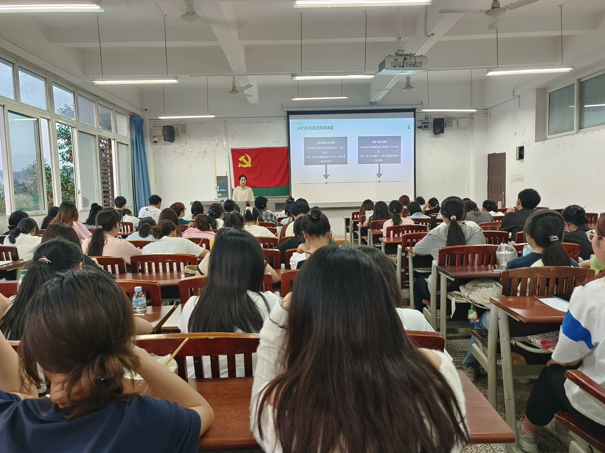 为响应“全民阅读”号召,引领同学们在数字化浪潮中审视阅读的本真价值,4月19日19:00,我院初心工作站在明辦楼1栋301教室开展第32期“每周一学”活动,隆宇婷同学分享阅读的方式:从传统到数字时代的探索,共计76人参加。