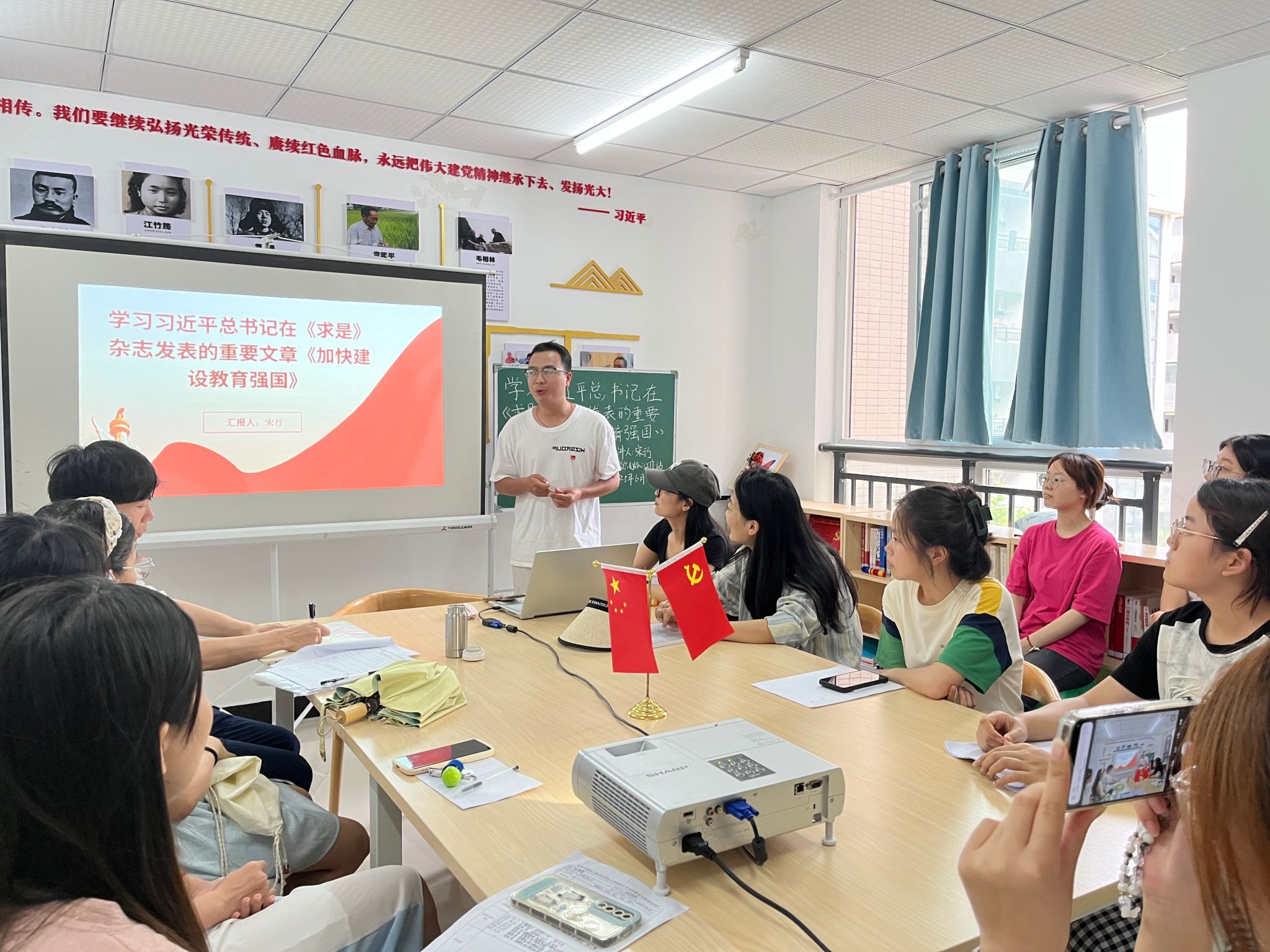 活动中,宋行同志系统解读文章内容,围绕教育强国的战略定位与核心目标,点明其对于国家发展、民族复兴的深远意义;深入阐述教育发展总体要求,明确新时代教育事业的方向与准则;聚焦基础教育攻坚方向,探讨提升基础教育质量、促进教育公平的路径;剖析高等教育改革创新,强调培养创新人才、推进学科建设的重要性;解读教育支撑体系构建,涵盖师资队伍、教育资源配置等关键要素;着重强调党的领导与保障措施,凸显党在教育强国建设中的引领作用。活动结束,同学们纷纷表示将以文章精神为指引,立足本职,在学习实践中勇担使命,为推进教育强国建设贡献自己的力量,共同书写教育事业发展的新篇章。