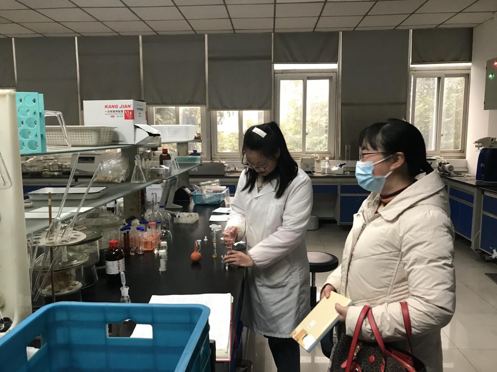 检查过程中,吴老师首先与研究院中药室张毅主任进行交流,了解用人单位对实习学生的综合表现、对我院人才培养的课程体系建议以及探讨今后教师挂职锻炼、科学研究合作等。张主任对我院毕业生在单位的实习情况给予了反馈,认为我院实习生有较高的工作热情与业务能力,能遵守单位各种规章制度,积极配合指导教师的工作,能主动参与学习、能胜任工作。张主任还针对用人单位的用人需求对高校实践教学环节中教师应强化的教学细节提出建议。随后张主任陪同吴老师,与实习生同学一起参观了同学们的实习工作环境。最后,吴老师与实习学生亲切交谈,了解同学们日常工作内容,并与实习生同学就在实习中遇到的问题、对实习工作的建议以及对自身未来的计划等进行讨论。同学们表示在实习期间学习到了许多新的知识,掌握了食品药品常用质量检验技术,学会了液相色谱、气相色谱、串联质谱等多种仪器的使用方法,自身的实验操作能力得到了很好的提升,并对行业工作有了进一步认识。