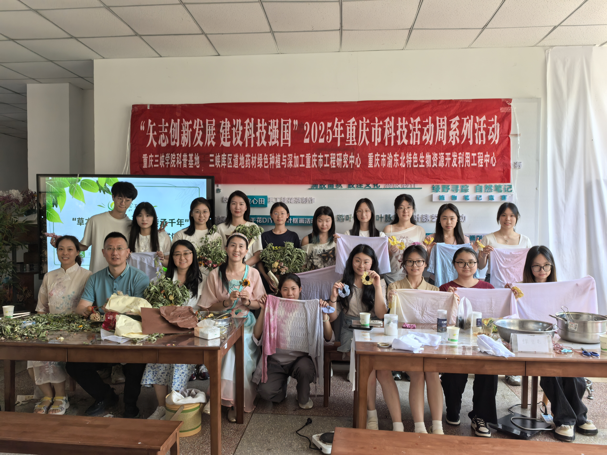活动最后,全体参与者与老师合影留念。本次植物扎染活动不仅让师生亲身感受非遗技艺的魅力,更通过创新实践推动了传统工艺的活态传承。