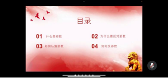 各辅导员在周末教育中对防范邪教进行专题讲述,为同学们科普反邪教知识。团总支学生会开展了“喜迎二十大、防范邪教保平安”主题会议,学生会主席团成员陈世强倡导我院全体团学骨干积极学习、崇尚科学,坚决抵制邪教。各班班长组织同学召开反邪教主题班会,为同学们讲解了“什么是邪教”、“为什么要反对邪教”、“如何认清邪教”、“如何反对邪教”四大方面的知识,鼓励同学们用理性对待邪教,宣扬科学。