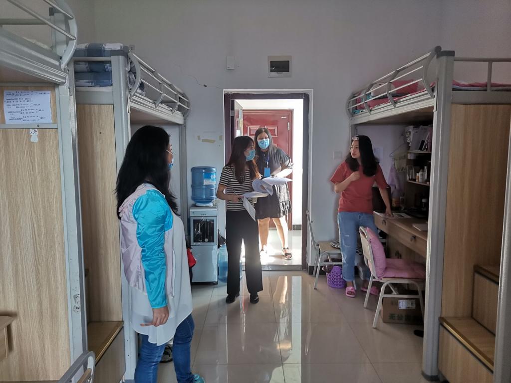 6月1日15:00,我院学工办副主任李华林,辅导员向丽霞、蒋园园深入学生宿舍,旨在了解同学们返校后的生活情况,督促同学们做好宿舍卫生,排查寝室安全隐患,并引导各位同学在疫情期间保持良好的作息和心态。