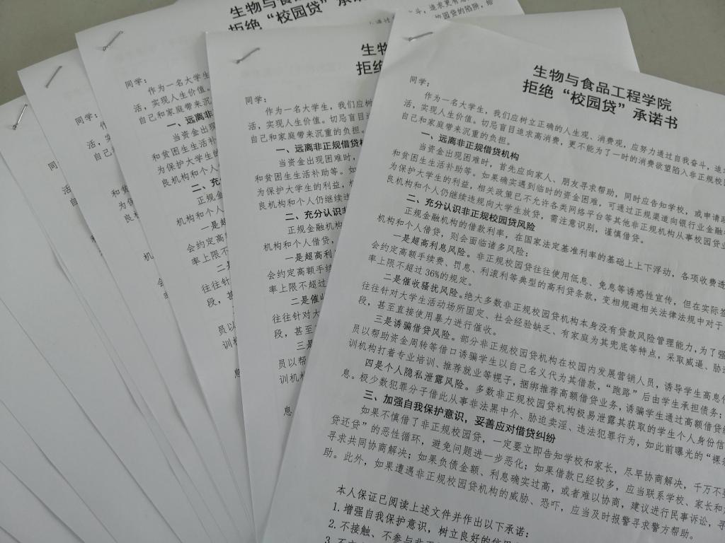 本次大会以“郑德幸之死”这一视频开启,这位大学生因为沉迷游戏,数次向非法分子贷款,最后承受不了巨额负债,跳楼自杀。一条鲜活的生命就这样逝去,不禁让人叹息,郑德幸之死的发生,也让同学们更加直观的看到了“校园贷”的危害。然后,老师们从校园贷的类别、贷款方式方法、风险、产生的严重后果等方面进行了详细宣讲,并以我校发生的“校园贷”经典案例进行剖析,呼吁大家理性消费,自觉抵制超前消费和过度消费,拒绝校园贷,树立良好信用意识,增强自我保护意识,引导同学们树立正确的世界观、人生观、价值观。会后,我院全体班级同学集体签订了《2138cc太阳集团“拒绝校园贷”承诺书》。