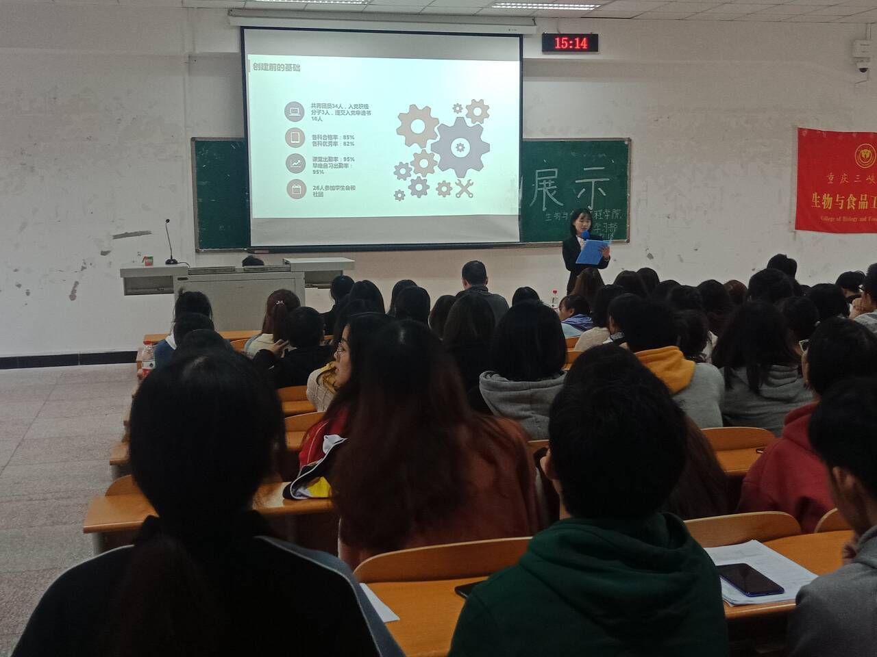 此次汇报展示,使各班产生一种向心力和凝聚力,同时了解建设优良学风的重要性,接下来评选院级优良学风班,并积极参评校级优良学风班,争取好成绩。(生工学院 李华林 李瑾年)