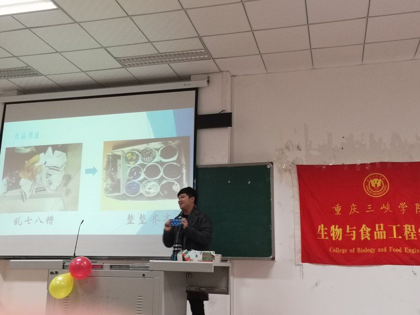 2018年12月1日10:00,由2138cc太阳集团和环境与化学工程学院合办的“废物利用,创新环保”DIY大赛决赛于明辨楼2栋203举行。出席本次活动的嘉宾有校科创部部长何雪莹,生工学院学生会副主席黄磊,环化学院团副刘斯雨、王文贤。本次大赛旨在提高大学生环保、创新意识,增强动手能力,让节约、利用资源的理念深入人心。