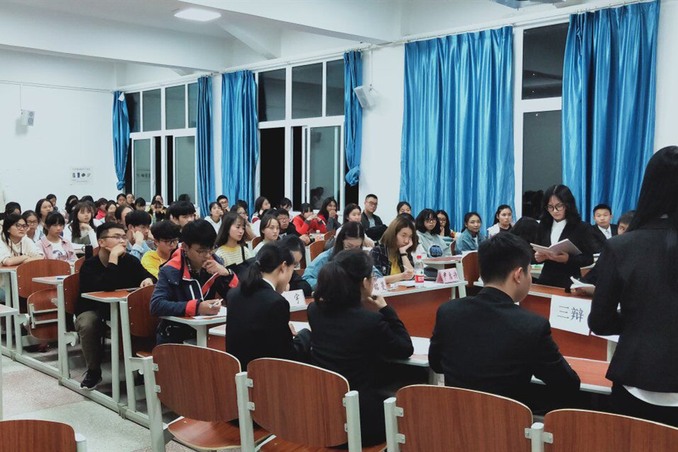 2018年11月1日19:00,我院于慎思楼4栋514举行了辩论赛半决赛。出席本次大赛的有前院辩论队队员张宇,现任队长徐铭蔓,院辩论队成员尹启诗、卢铭齐以及2018级全体学生。本次比赛旨在丰富校园文化,培养同学们辩证思维与团结协作能力。