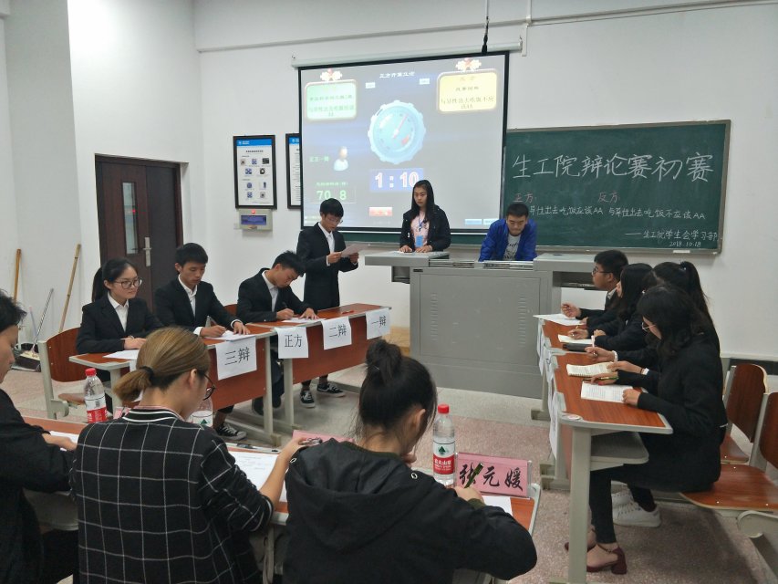 此次比赛围绕“和异性在一起是否AA”、“大学生是否该兼职”、“社会秩序的维持主要靠道德还是法律”这三个辩题进行了激烈的辩论。比赛时,选手们的妙语连珠、能言善辩令人惊叹叫绝,他们研精覃思,利析秋毫将整个比赛带入一个又一个的高潮,为同学们呈现了一场精彩绝伦的语言文化盛宴。辩手们针对对手逻辑上漏洞逐一回击,思路清晰,文思齐飞,使比赛气氛既紧张又刺激,引得台下掌声连连。大赛最后,徐铭蔓、母越、尹启诗对此次初赛中辩手们的表现进行了点评。随后母越说到,我们要不断总结经验,深刻了解思辨的重要性。最终食品质量与安全班、食品科学与工程一班、生物技术班取得胜利。