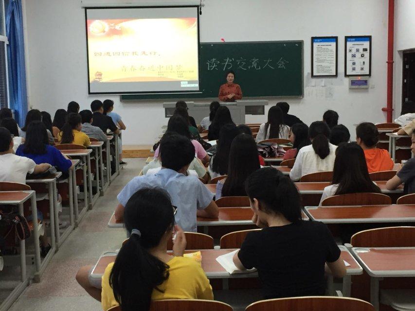 活动中,有的班级以同学优秀的读书心得分享开始,并相互交流好的读书方法。其中2016级食品科学与工程班的向浩文同学讲到自己阅读《习近平七年知青岁月》的感悟——习近平总书记作为一个知青来到乡村,用自身的勤奋与努力证明“业精于勤荒于嬉,行成于思毁于随”。有的班级也以小组讨论的形式来进行读书心得交流讨论,并派出代表上台分享。