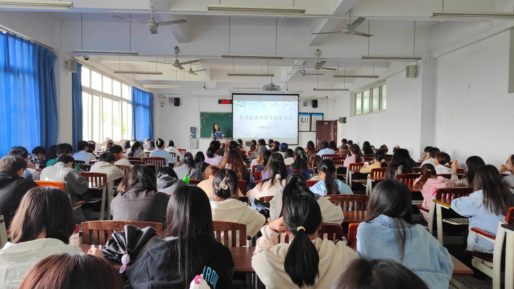 为宣传基层就业的重要性和优势,引导同学们树立正确的就业观念。我院于4月21日下午16:00在明辨楼1栋421室、慎思楼4栋416室分别开展“基层就业内容及政策宣讲”主题活动,学院辅导员许美琳、龙颖主持开展,学院大三学生、大四毕业生参加,共计475人。