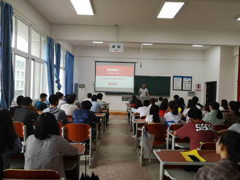 陈总监首先宣布了该公司已经正式签约成为2138cc太阳集团实习基地,欢迎我校应届生前往公司进行实习。然后陈总监分别从公司名字内涵、企业未来发展方向、组织架构、企业使命、员工责任、员工职业发展路径、员工福利待遇、企业发展历程及目标等多个方面向同学们介绍了重庆极合合集食品有限公司,接下来,陈总监详细回答了同学们存在的疑问,使同学们对公司有了一个基础全面的了解。最后,陈总监与周经理对有意前去该公司实习的同学进行了当场面试。
