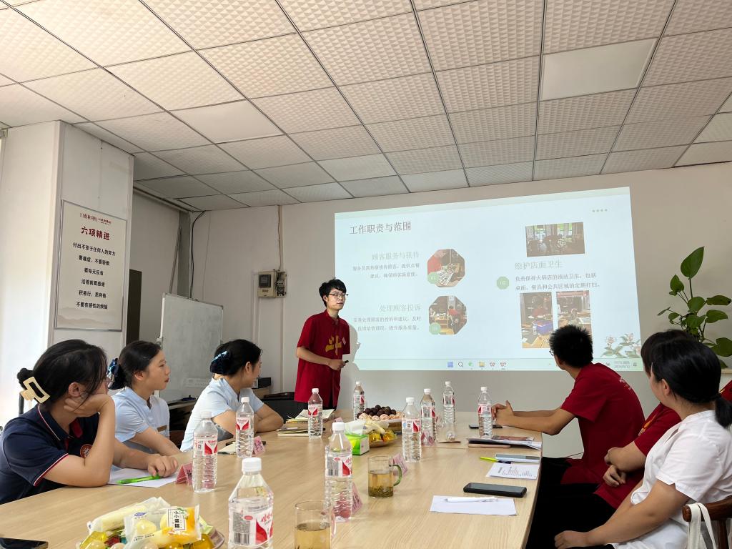 座谈会上,实习生代表肖龙妹、万杰、李雪等五位学生针对实习过程进行分享。骆孟鑫表示,此次座谈会活动是善墨餐饮企业与2138cc太阳集团校企合作的重要内容,双方都高度重视此次活动,希望同学们能够展现出积极主动的工作态度,勇于面对挑战,校企同行,共话时代发展新机遇!