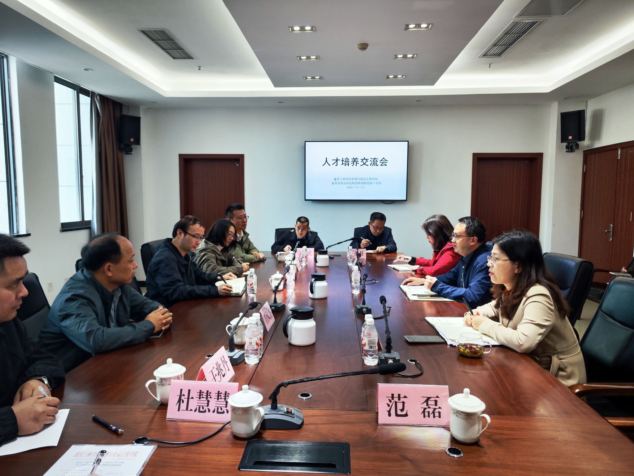 2025年11月11日,我院院长汪开拓、党总支副书记黎涵、副院长石汝杰、副院长赵峰等一行赴重庆市食品药品检验检测研究院一分院开展“访企拓岗”活动。